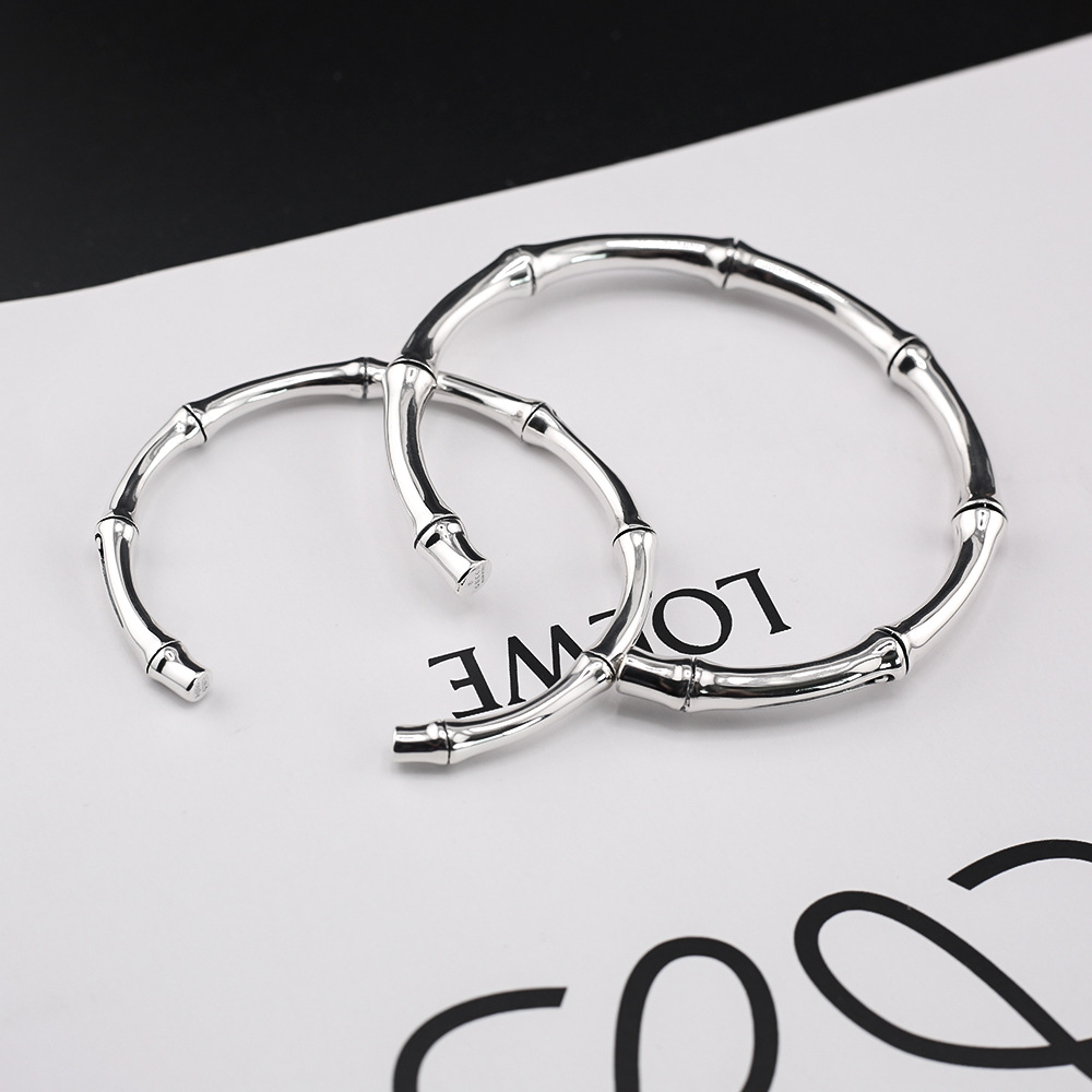Classic BBK bamboo open bracelet couple's niche design high-grade men's and women's Thai Silver open bracelet