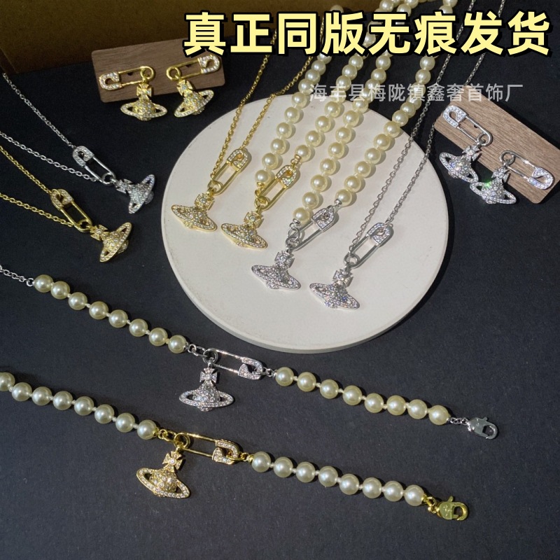High Version Empress Dowager Pin Pearl Necklace Women's Full Diamond Saturn Pendant Pape Clavicle Chain Factory Hair
