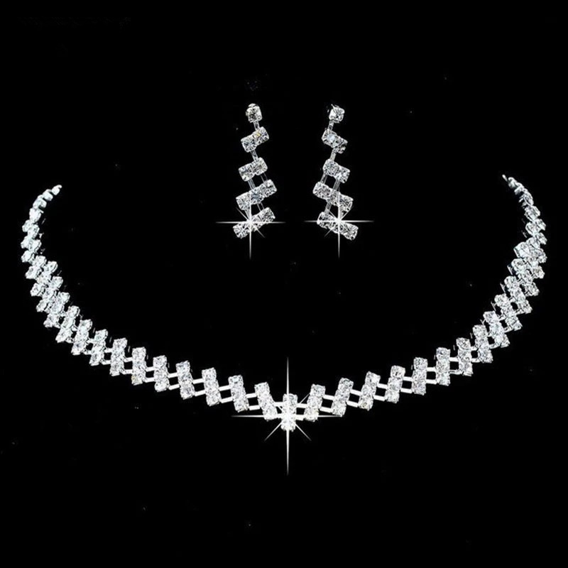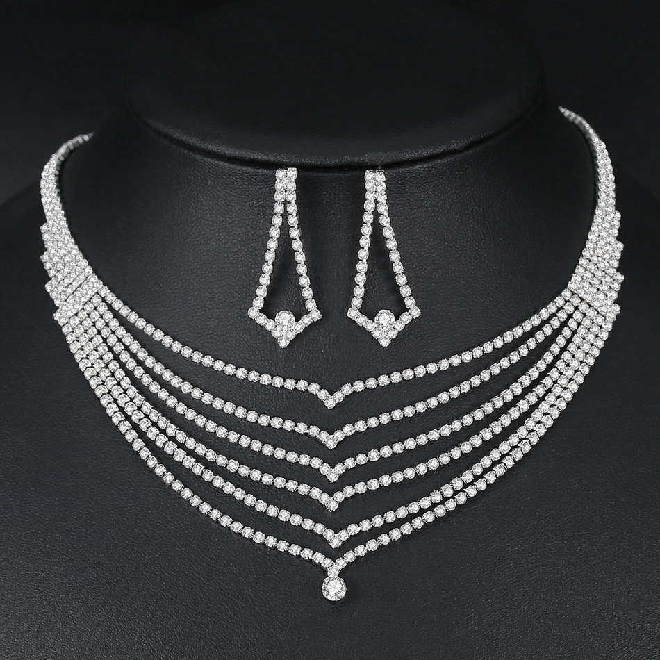 Foreign trade rhinestone necklace bride simple jewelry necklace two-piece set simple rhinestone necklace earrings suit N6225