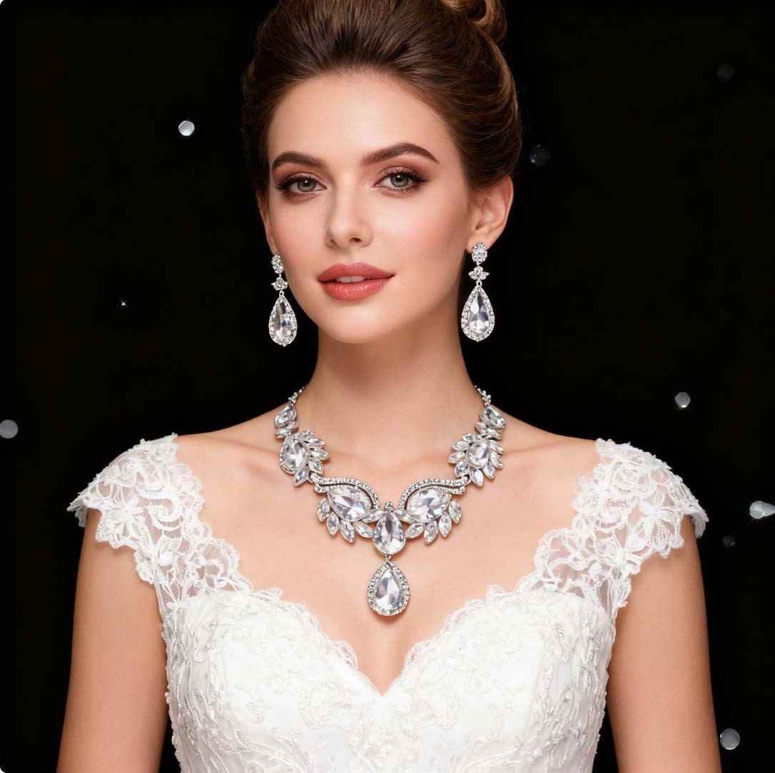 European and American temperament bride wedding chain jewelry cross-mirror for necklace earrings two-piece dress neck accessories