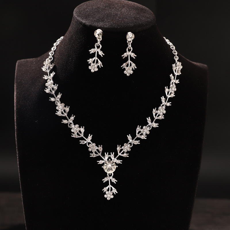 Bridal Leaf Rhinestone Necklace Accessories European and American Earrings Leaf Drop Set Wedding Dress Jewelry Wholesale Luxury