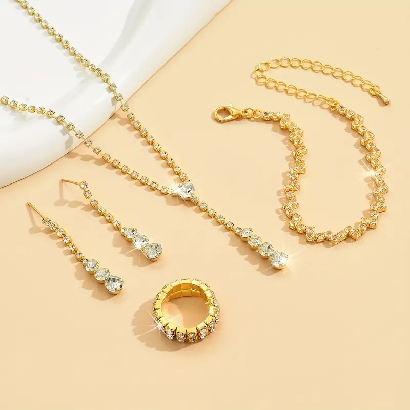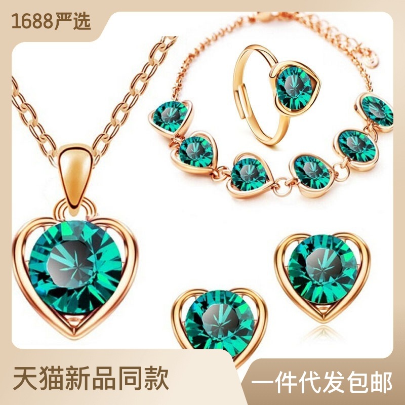Factory direct wholesale best selling fashion crystal heart-shaped necklace earrings ring bracelet four-piece 399