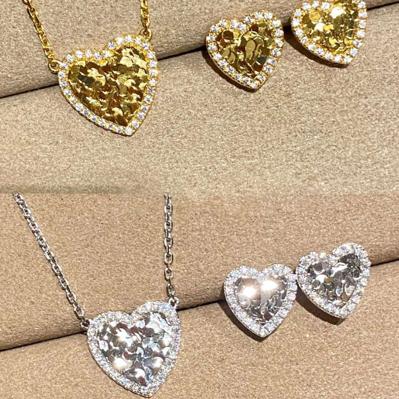Light Luxury High-End Vintage Heart-Shaped Diamond-Studded Ice Crystal Stud Earrings Necklace Niche Retro Exquisite Personalized Jewelry Set