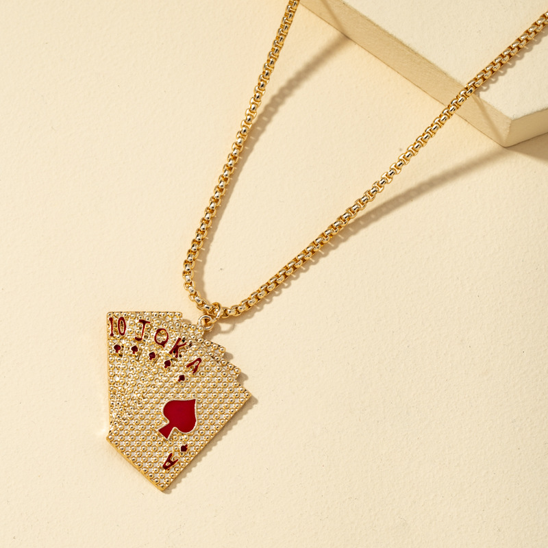 Design sense of playing card necklace earrings suit Europe and the United States cross-border new fashion personality ins net red with the same couple
