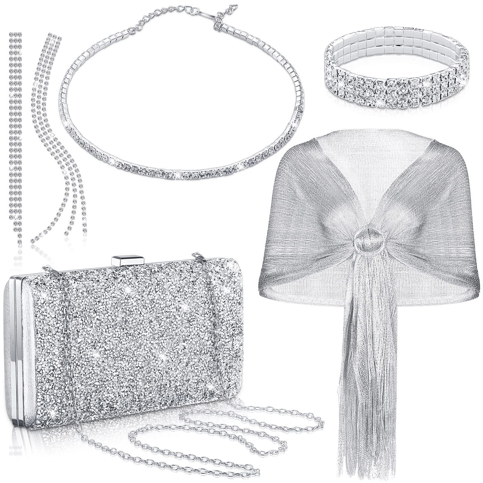 European and American Cross-Border Fashion Evening Bag, Diamond-Encrusted Shiny Geometric Earrings and Bracelets, Diamond-Encrusted Luxury Shawl Necklace Set