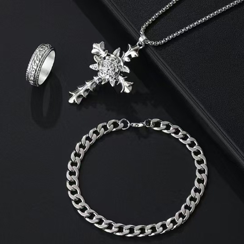 Alloy Hot Selling Amazon New Cross Rose Pendant Accessories Ring Bracelet Three-Piece Set