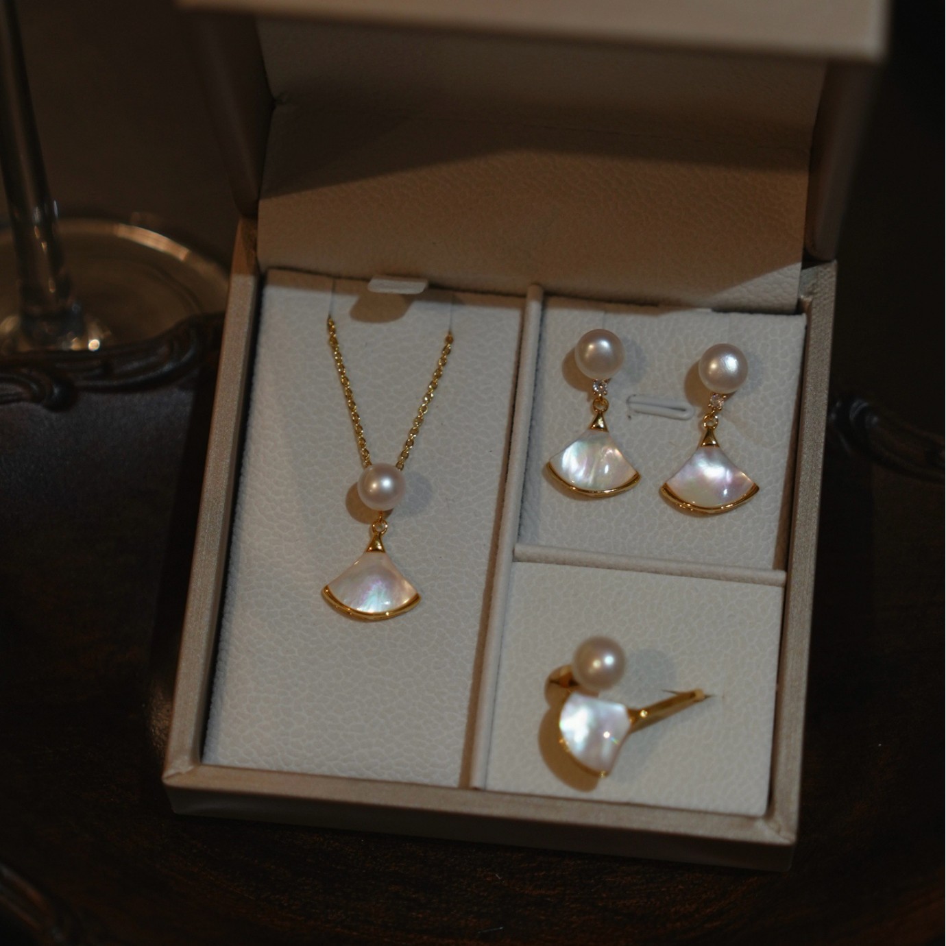 S925 Sterling Silver Natural Freshwater Pearl Skirt Necklace Women's Exquisite High-End Accessible Luxury Atmosphere Earrings Ring Set