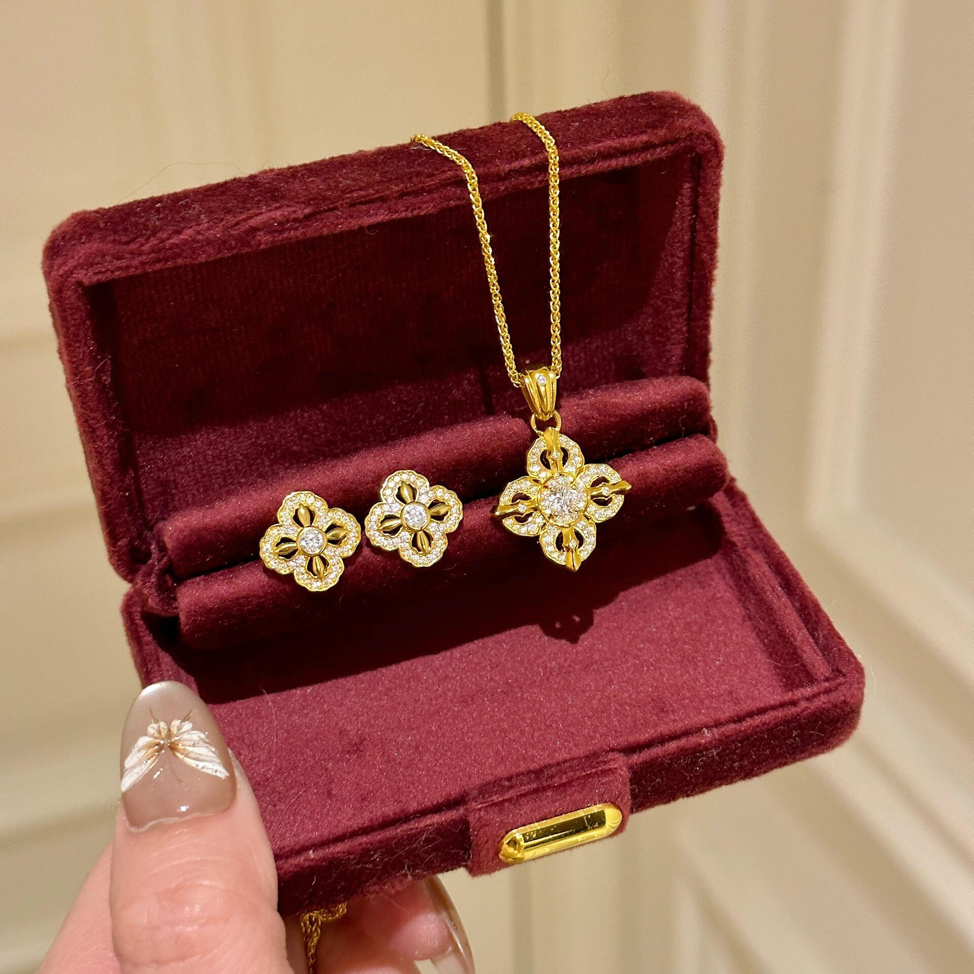 S925 sterling silver Mosan diamond four-leaf clover three-piece bracelet necklace female earrings a variety of trembles live factory wholesale