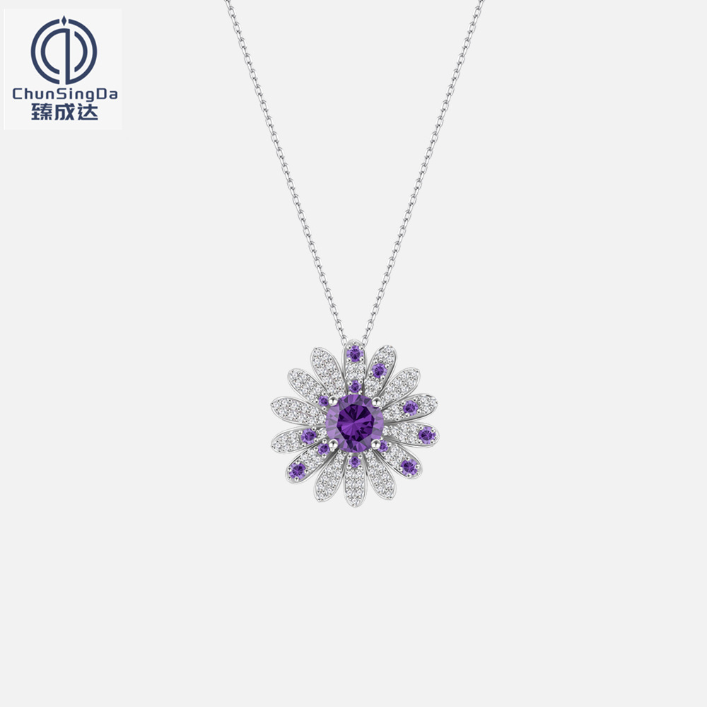2025 New Cross-Border S925 Sterling Silver Purple Diamond Daisy Necklace European and American Fashion High-End Set Sunflower Pendant