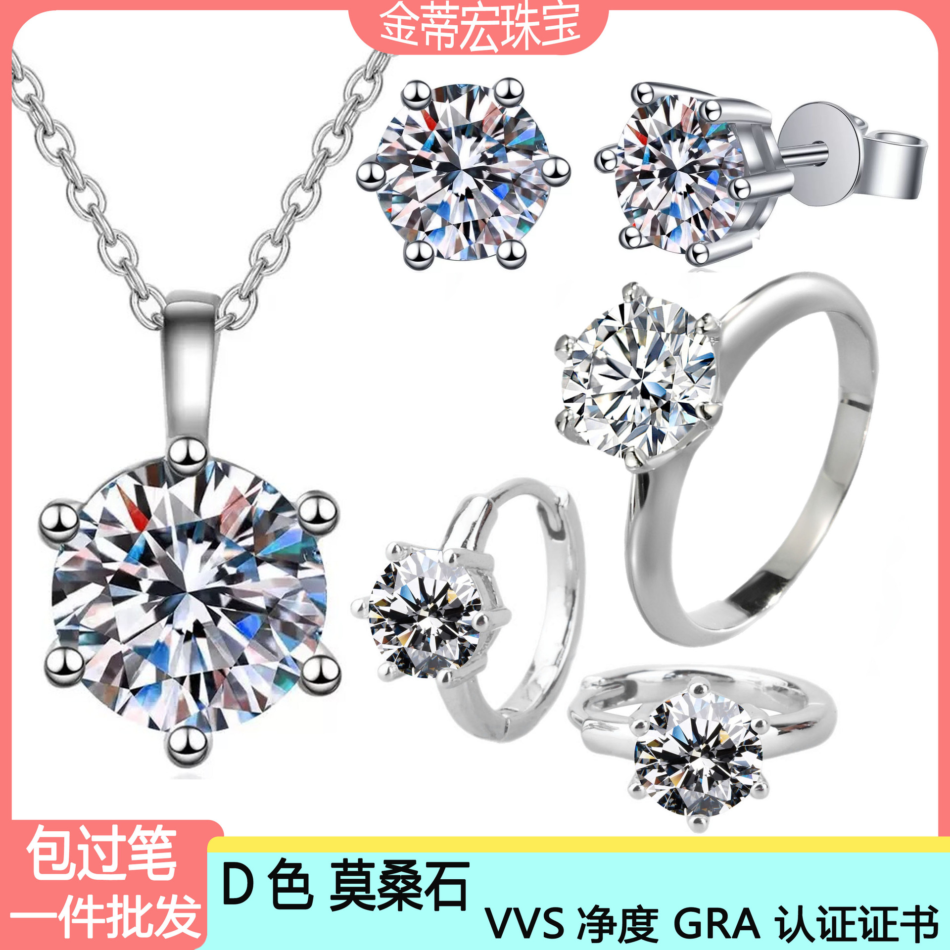 S925 sterling silver moissanite six-claw jewelry suit women's necklace ring earrings classic crown cross-border one wholesale
