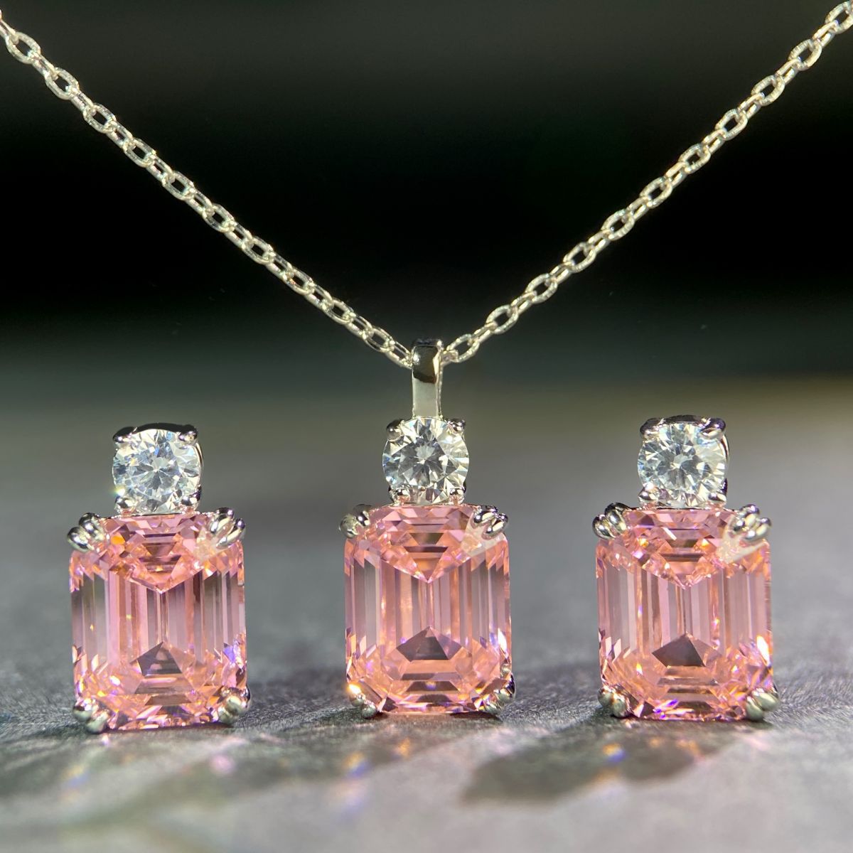 925 Sterling Silver Chain Ins Style Simple Color-free Emerald Cut Pagoda Pendant Powder Gemstone Necklace suit Chain