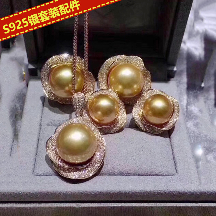 DIY jewelry accessories S925 sterling silver pearl earrings/pendant/ring empty holder gorgeous retro three-piece holder