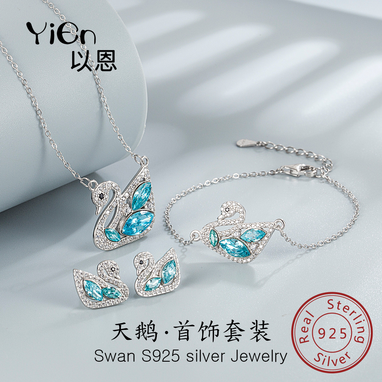 European and American Cross-border Swan S925 Sterling silver jewelry Set Blue Horse Eye Stone Swan S925 silver jewelry