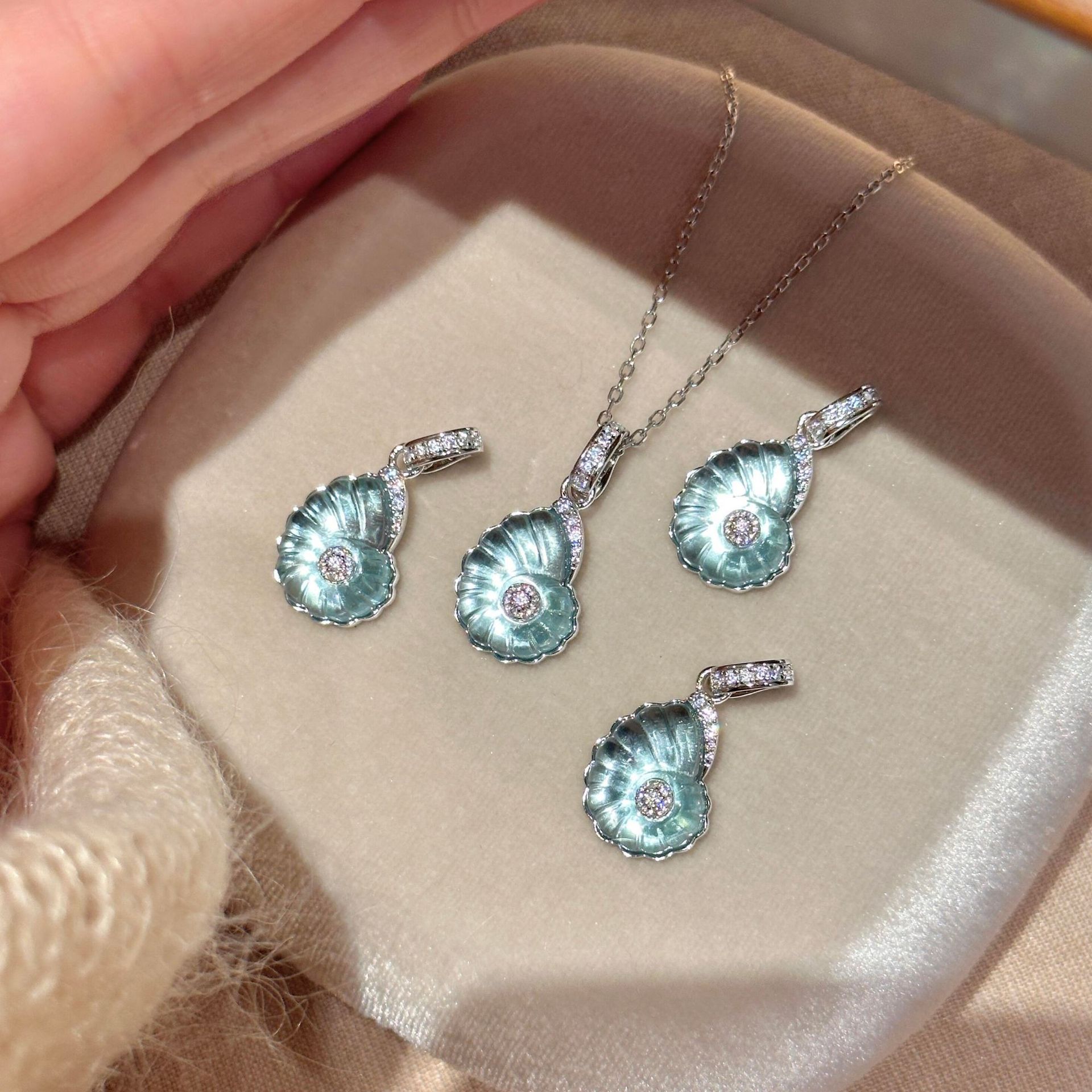 S925 Sterling Silver Conch Necklace Earrings for Women, Vintage Style, Light Luxury, Niche Design, High-End Feel, Popular Set on Xiaohongshu