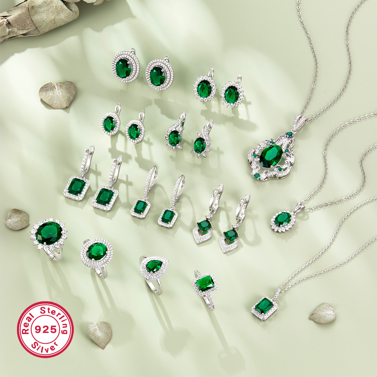 S925 silver jewelry suit retro high-grade earrings light luxury emerald necklace female hot mining cross-border jewelry wholesale