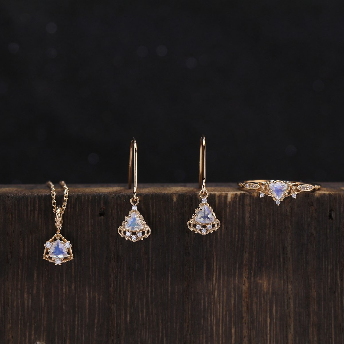 nojess Christmas limited natural moonstone ring New 925 sterling silver gold plated gemstone earrings jewelry suit