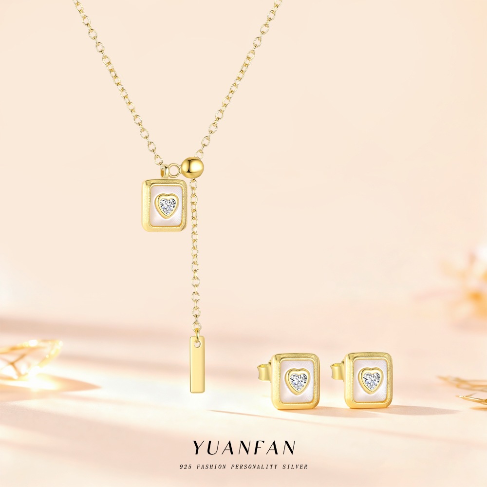 Yuanfan S925 Sterling Silver Heart-Shaped Square Box White Mother-Of-Pearl Zircon Pendant Necklace Women's Fashion Accessible Luxury Jewelry Set