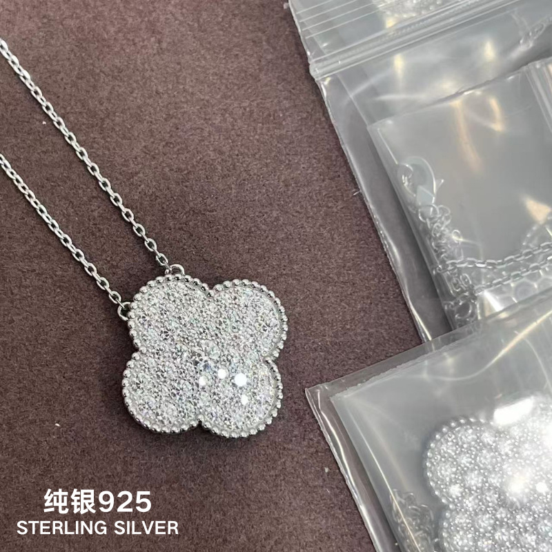 Cross-border exclusive for s925 sterling silver moissanite four-leaf clover pendant necklace bracelet earring ring suit live wholesale