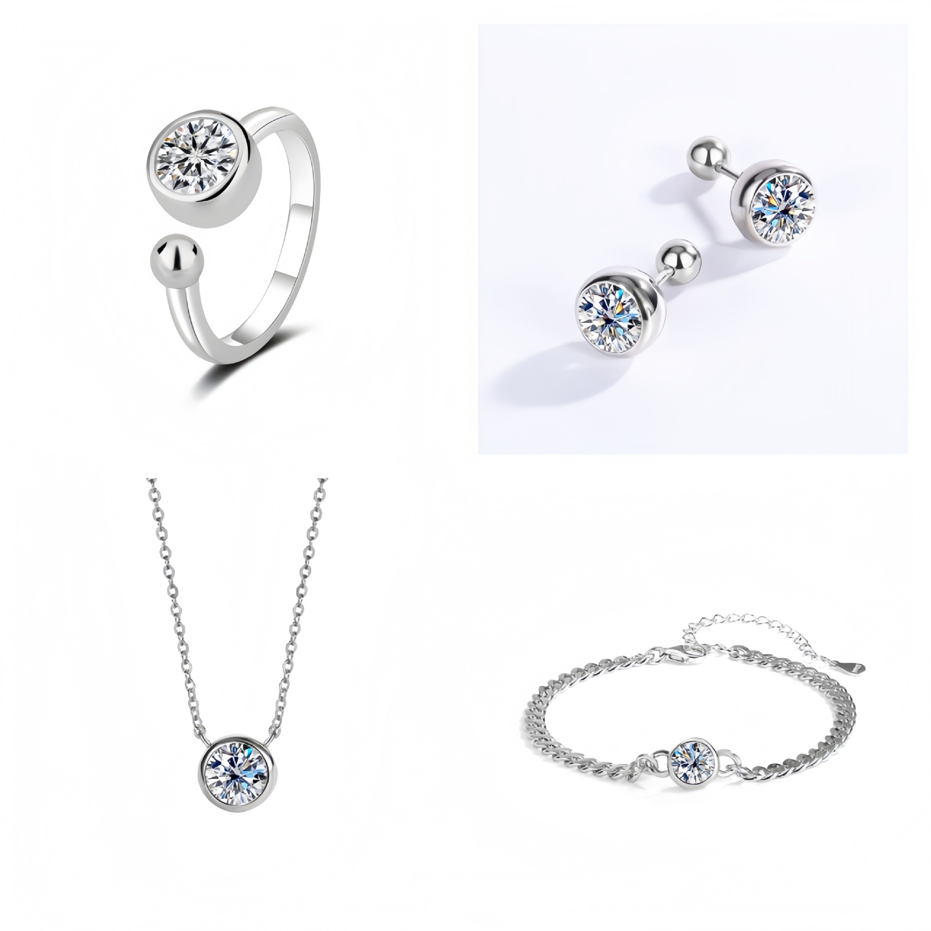 925 Sterling Silver Beaded Stud Earrings ins Zircon Gympani Gympani Diamond Ring Star Necklace Women's High-end Jewelry Set