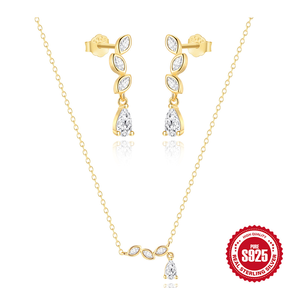 S925 Sterling Silver Diamond Water Drop Horse Eyes Advanced Necklace Earrings suit European and American Hot Selling Classic Temperament Jewelry Women