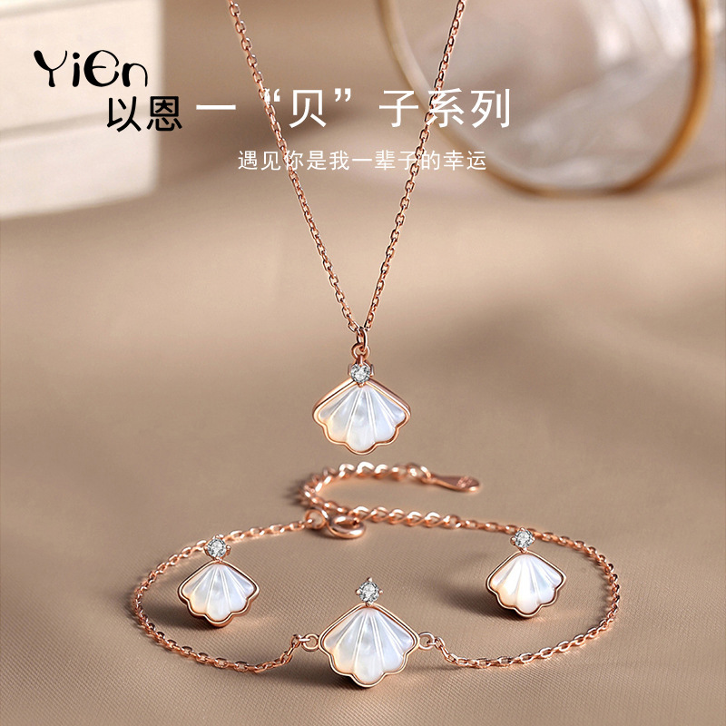 s925 Sterling Silver Lifetime Jewelry Set Niche Design Shell Necklace Fritillary Bracelet Earrings Christmas Gift