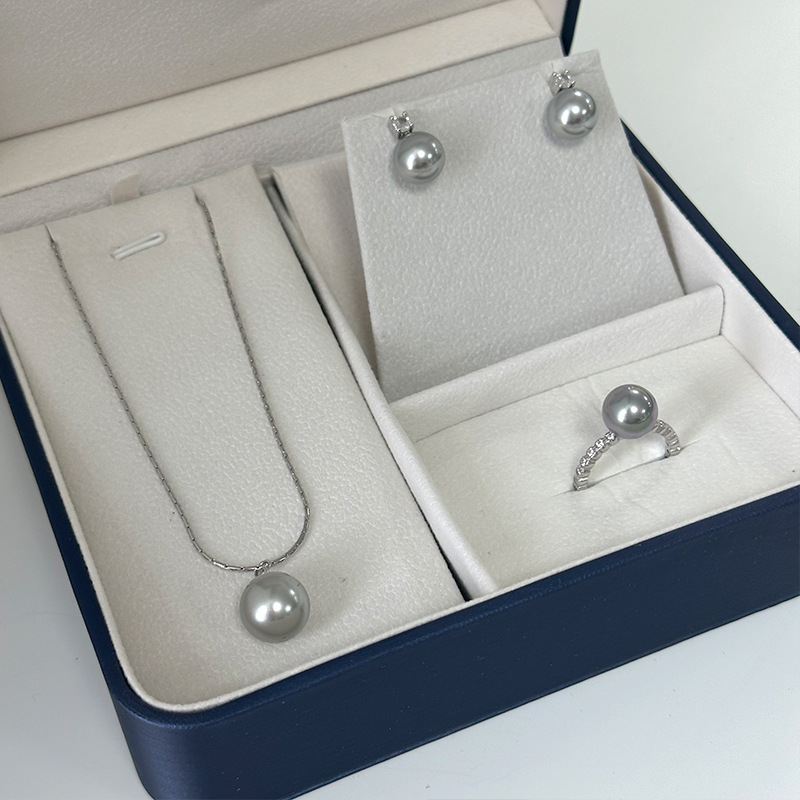 Shijia round gray pearl necklace combination suit s925 all-in-one Sterling Silver Women's exquisite 2023 new silver jewelry