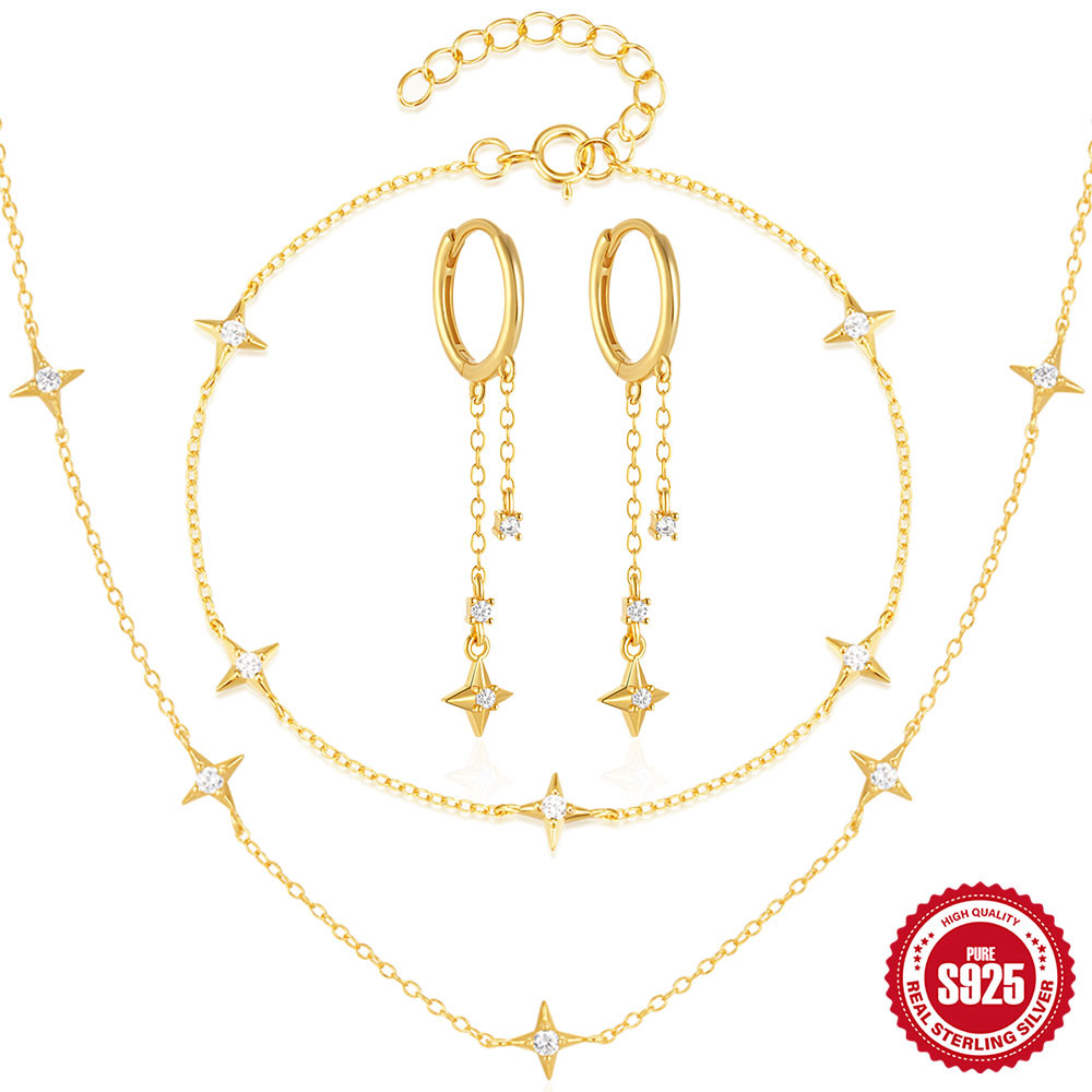 New S925 sterling silver diamond star bracelet necklace earrings suit four mans star niche design jewelry suit