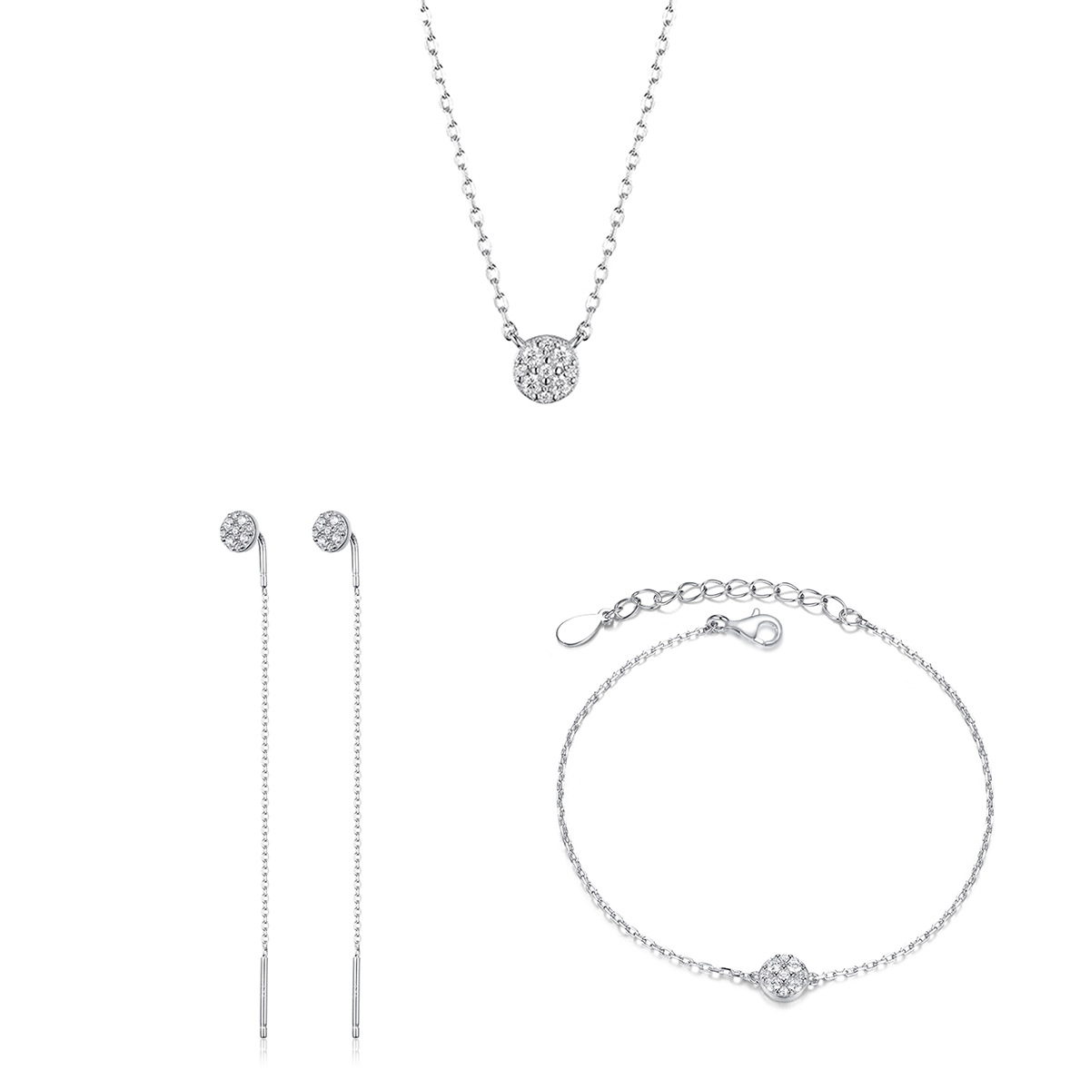 S925 Sterling Silver Micro-inlaid Zircon Round Brand Ear Line Bracelet Necklace Fashion Commuter Elegant Simple Daily Jewelry suit