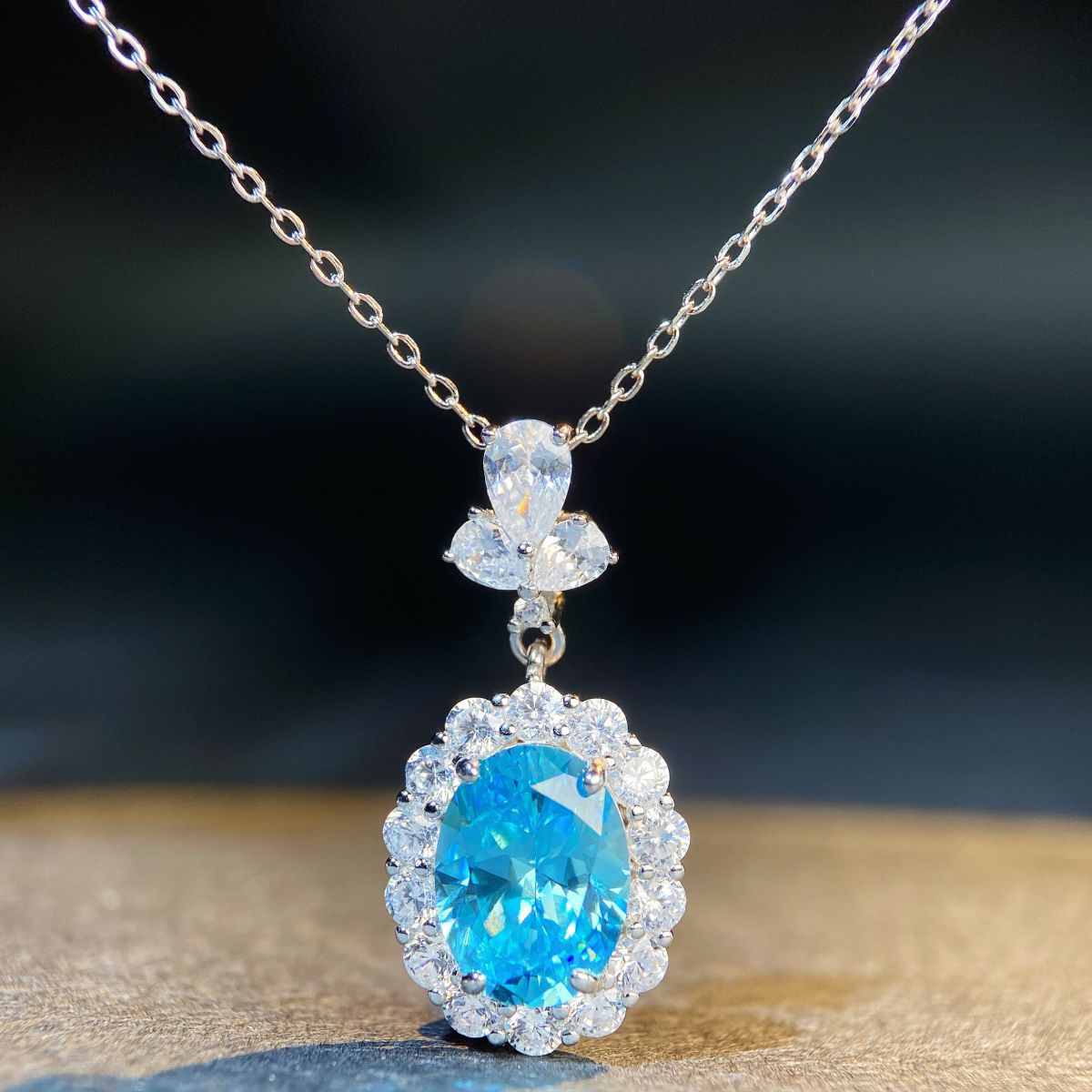 S925 sterling silver aquamarine necklace women's luxury suit large pigeon egg pendant Europe and the United States full diamond luxury inlay wholesale