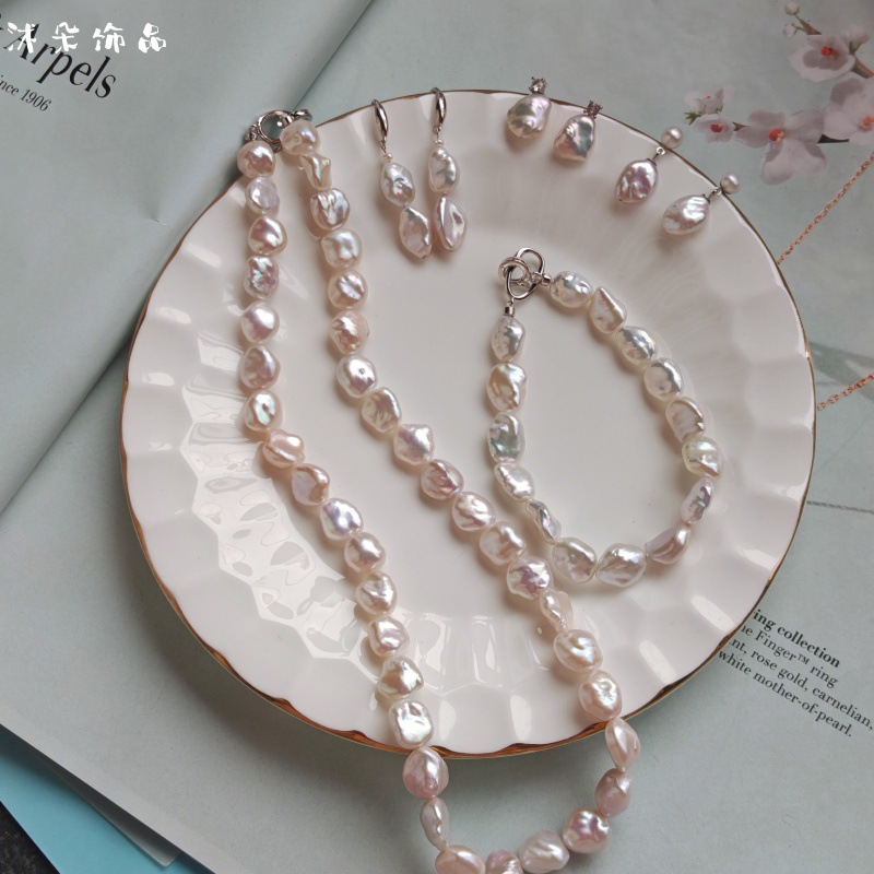 Natural Pearl Broken Silver High Quality 925 Sterling Silver Necklace Bracelet Set