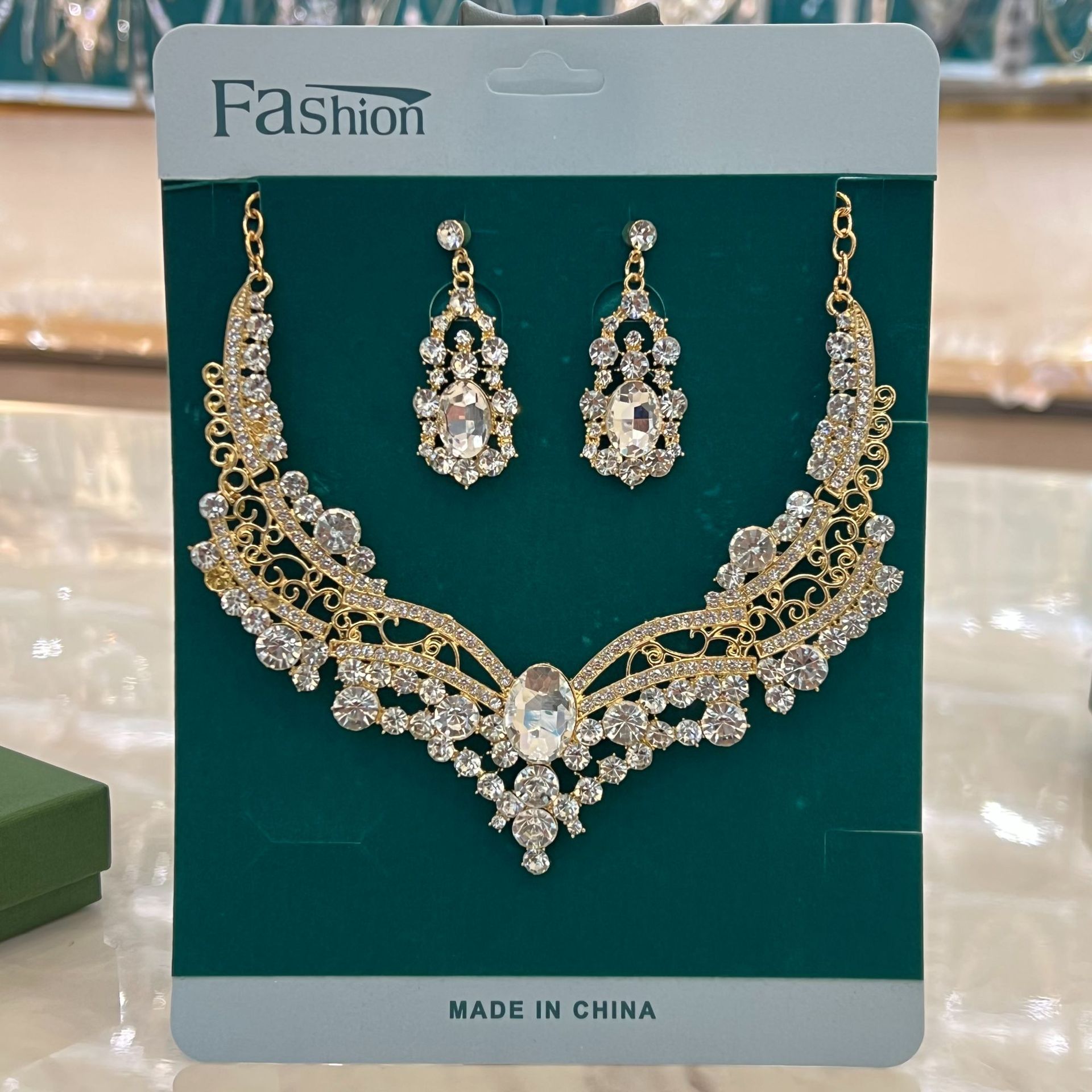 Bridal Jewelry 1/2/3 Row Gold and Silver Collar Bracelet Earrings Two-Piece Set Rhinestone Claw Chain Jewelry Necklace Set