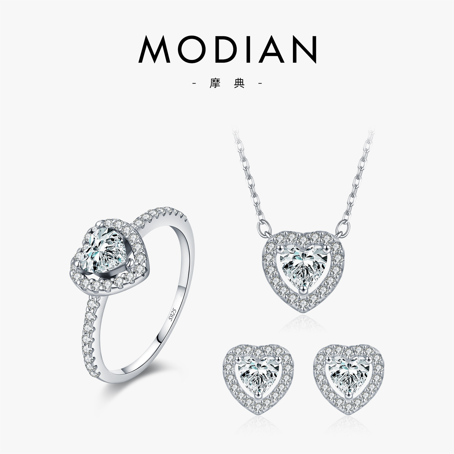 Modian Moidian Moissanite S925 Sterling Silver Light Luxury Brilliant Love Ring Women's French Small Fragrance Jewelry Set