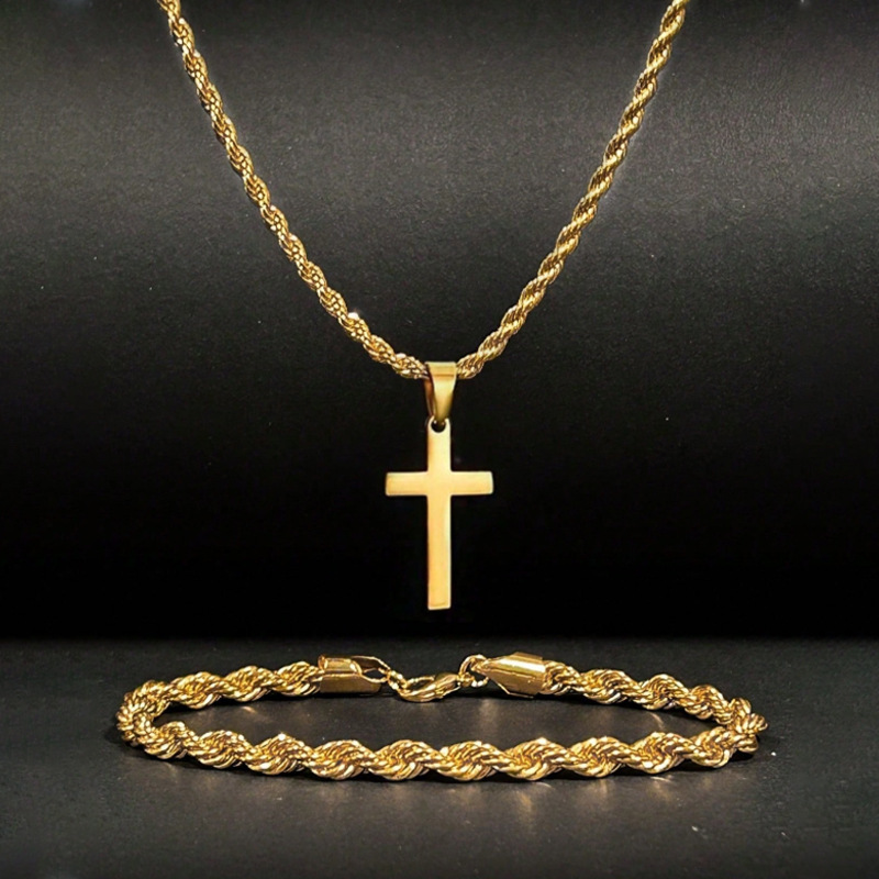 Fashion European and American Cross Pendant Necklace Bracelet Set Simple Versatile Niche Design High-End Two-Piece Set
