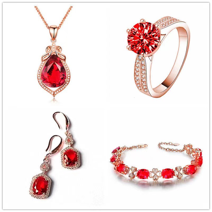 Garnet Set Ruby Women's s925 Silver Plated Set Fashion Luxury Jewelry Gift Japanese and Korean Silver Bracelet