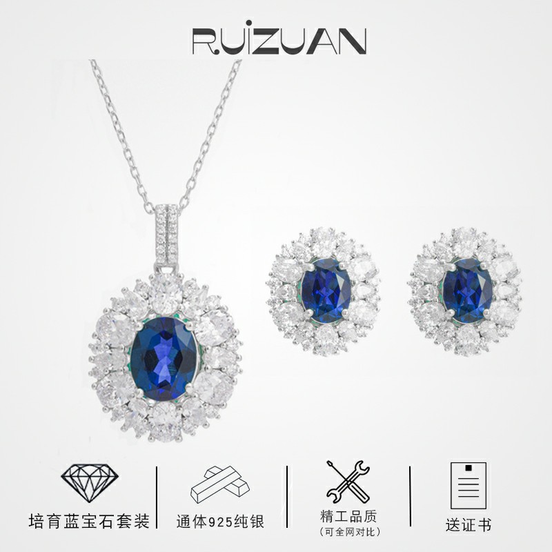 Shake tone live selling high jewelry cultivation sapphire necklace S925 sterling silver oval 8*10mm earring suit