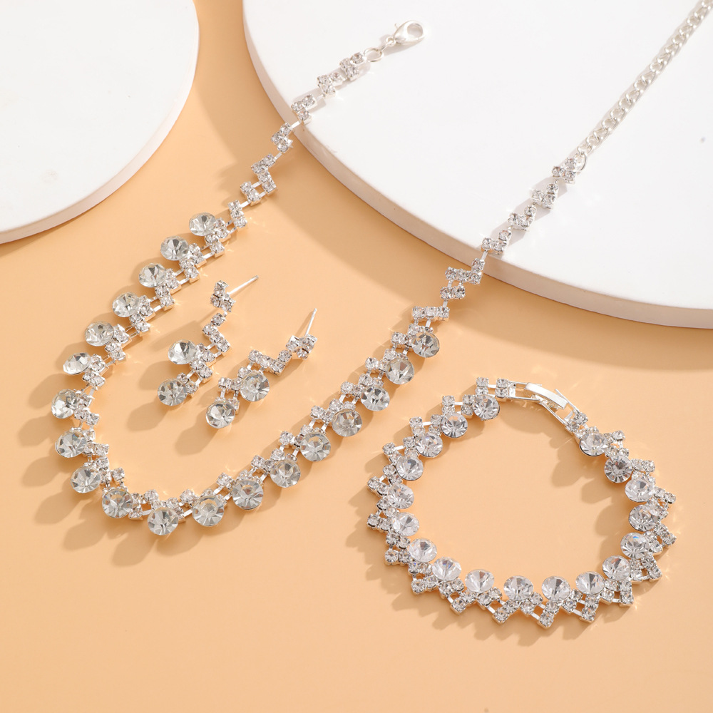 European and American Jewelry Wedding Accessories Three-piece Bridal Silver Plated Claw Chain Rhinestone Set Necklace Earrings Bracelet