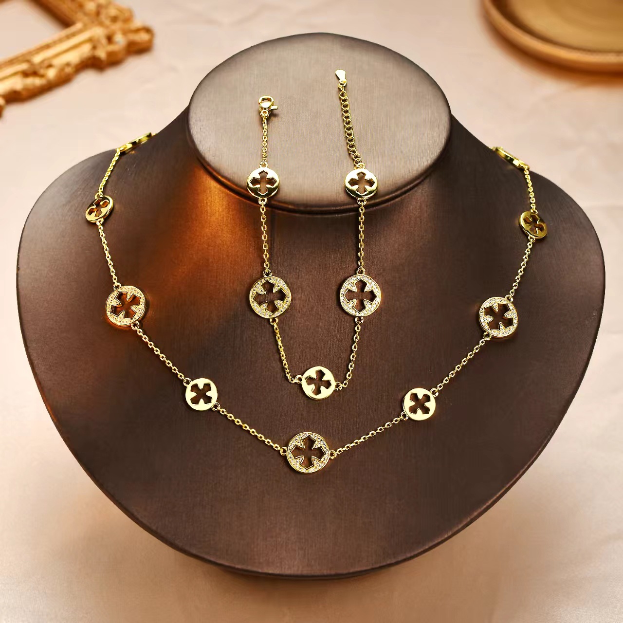 New Hollow Cross Necklace Bracelet, Exquisite Simple Set, Light Luxury Niche Clavicle Chain, High-End Design