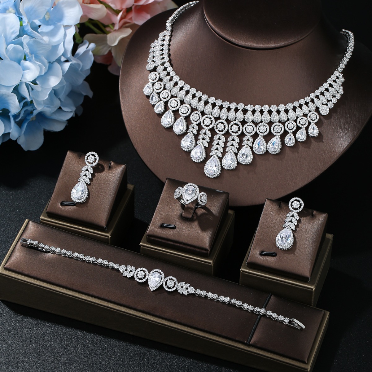 European and American bridal suit wedding dress accessories AAA zircon necklace earrings ring bracelet jewelry suit