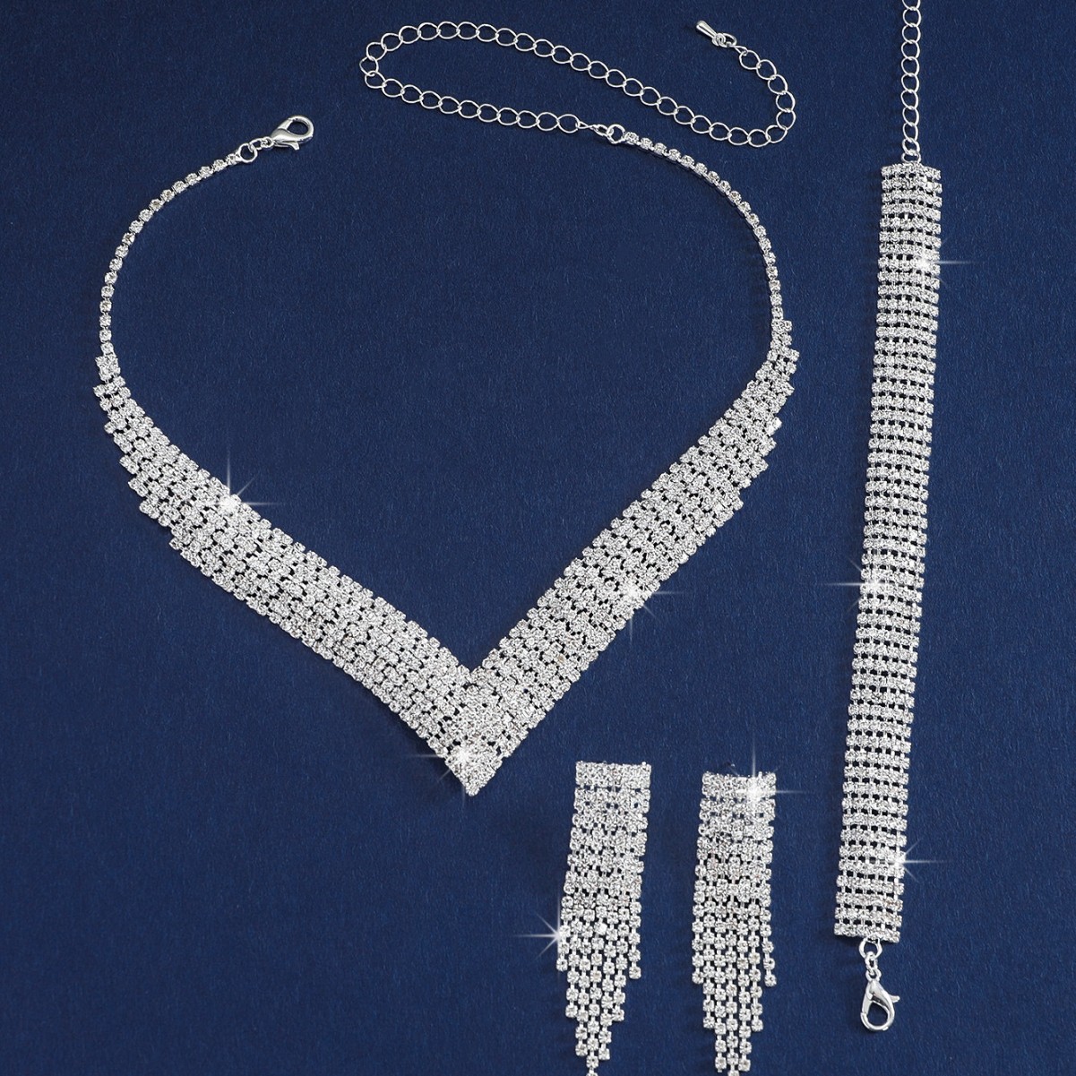 Cross-Border Supply European and American Popular Diamond Tassel Rhinestone Necklace Set Jewelry Wedding Dress Jewelry Accessories