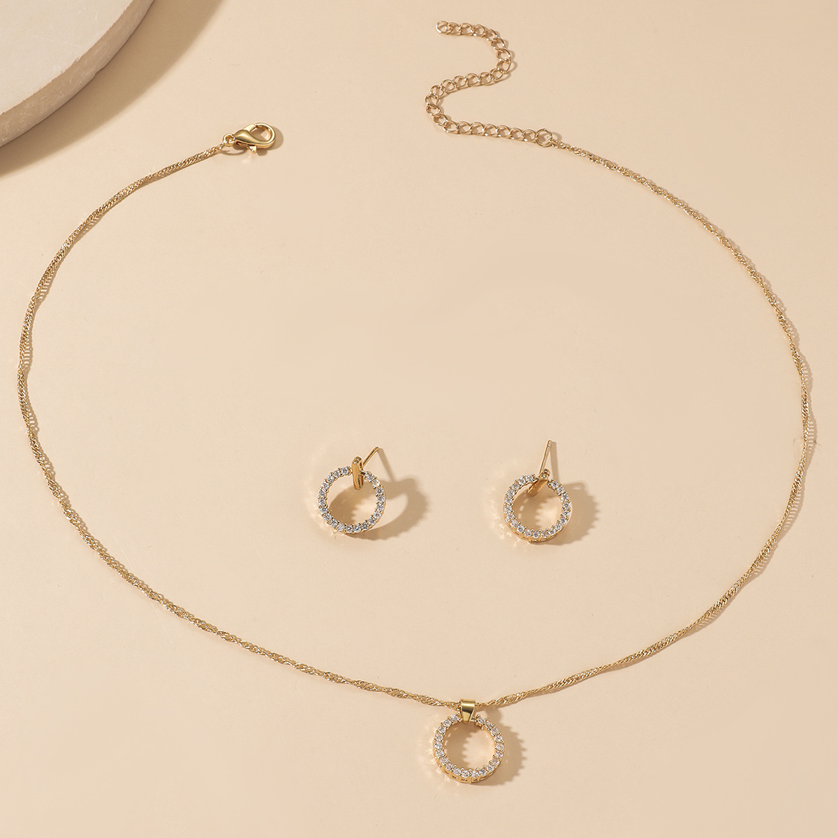 Factory original European and American jewelry suit necklace earrings combination geometric hollow drill ring women's jewelry