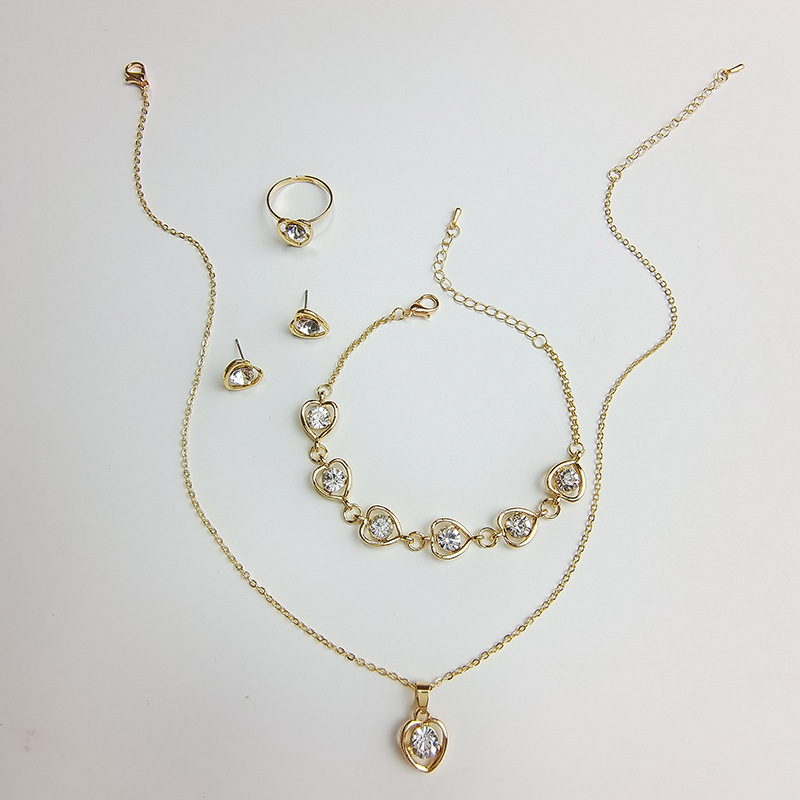 Cross-border New Dubai 18K Gold Heart Shape Jewelry Set Bridal Women Jewelry Necklace Ring Earrings Bracelet Wholesale