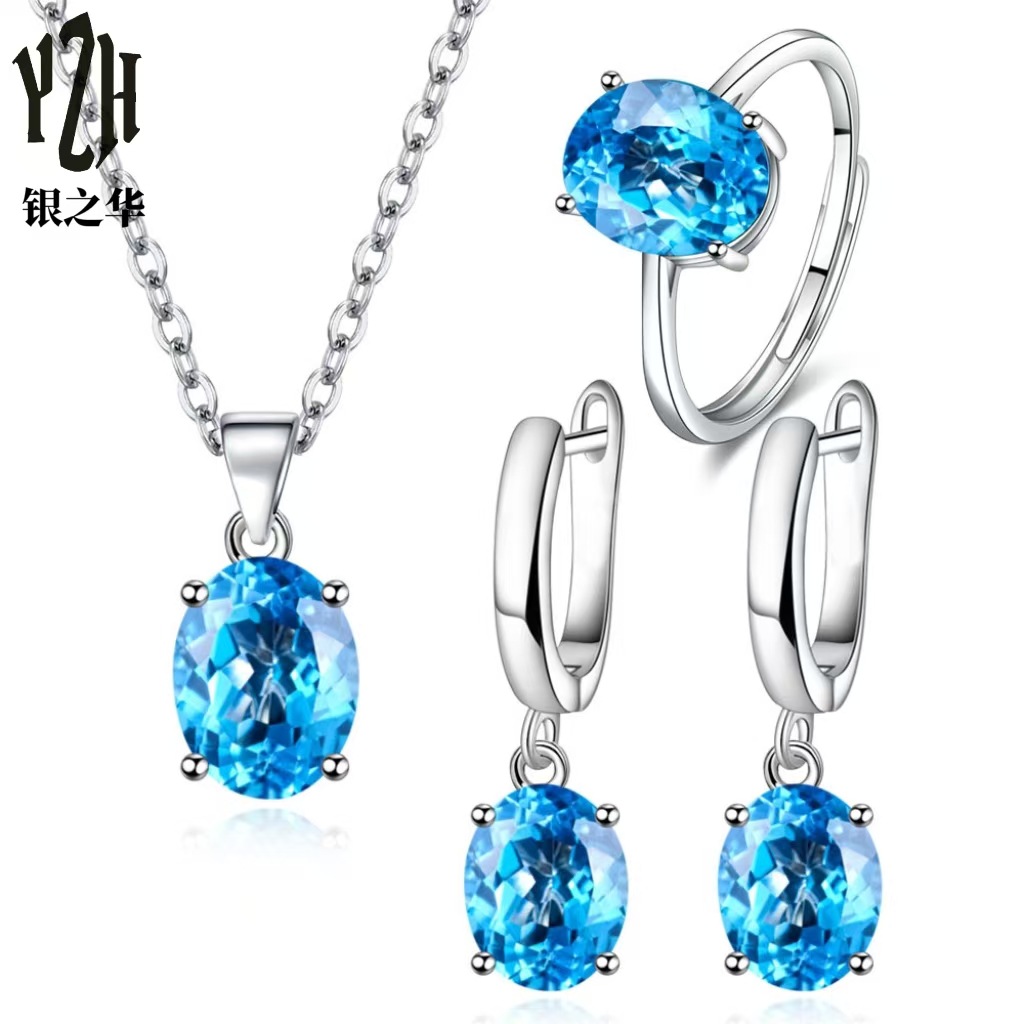 Cross-border New Style Set Girl All-match Egg-shaped Color Imitation Gemstone Ring Crystal Pendant Necklace for Lover Gift