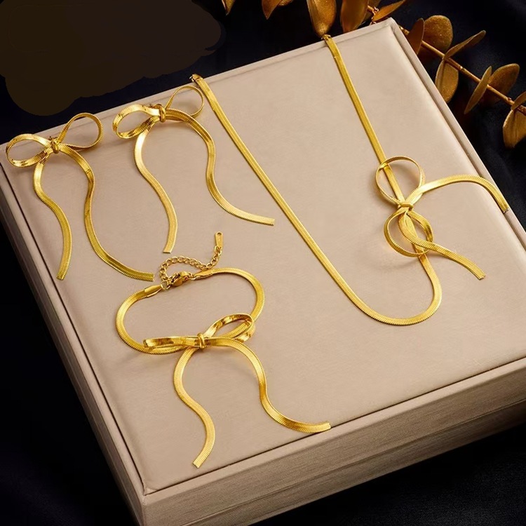 New Flat Snake Bone Chain Bow Bracelet Necklace suit Simple Fashion Internet Celebrity Elegant Clavicle Chain Jewelry