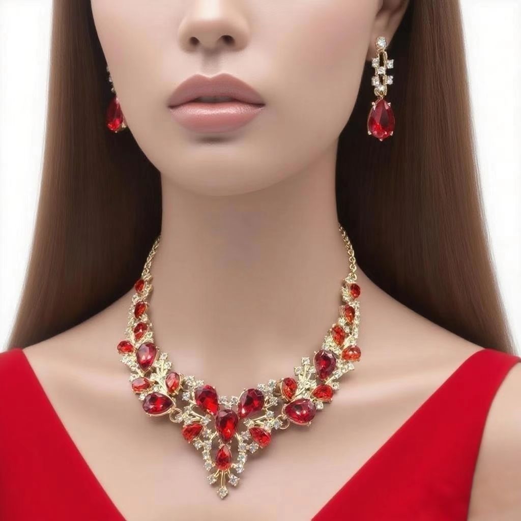 Cross-Border Water Drop Super Shiny Luxury Bridal Necklace Three-Piece Set Zircon New Gemstone Short Crystal Star Palace Style