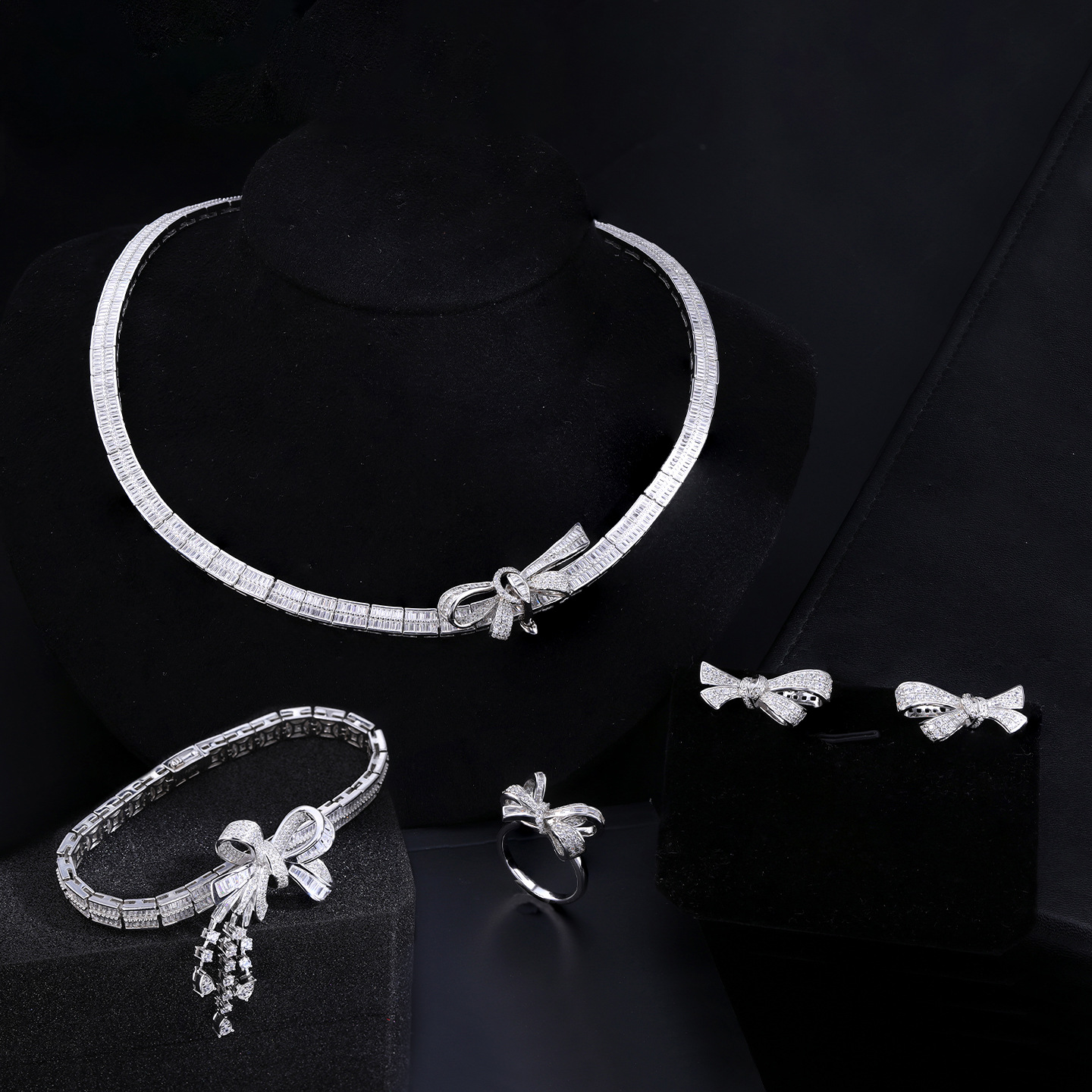 S925 Sterling Silver Full Diamond t Square Necklace European and American Clavicle Chain High-End Bow Necklace Women's Cross-Border Popular Neck Jewelry