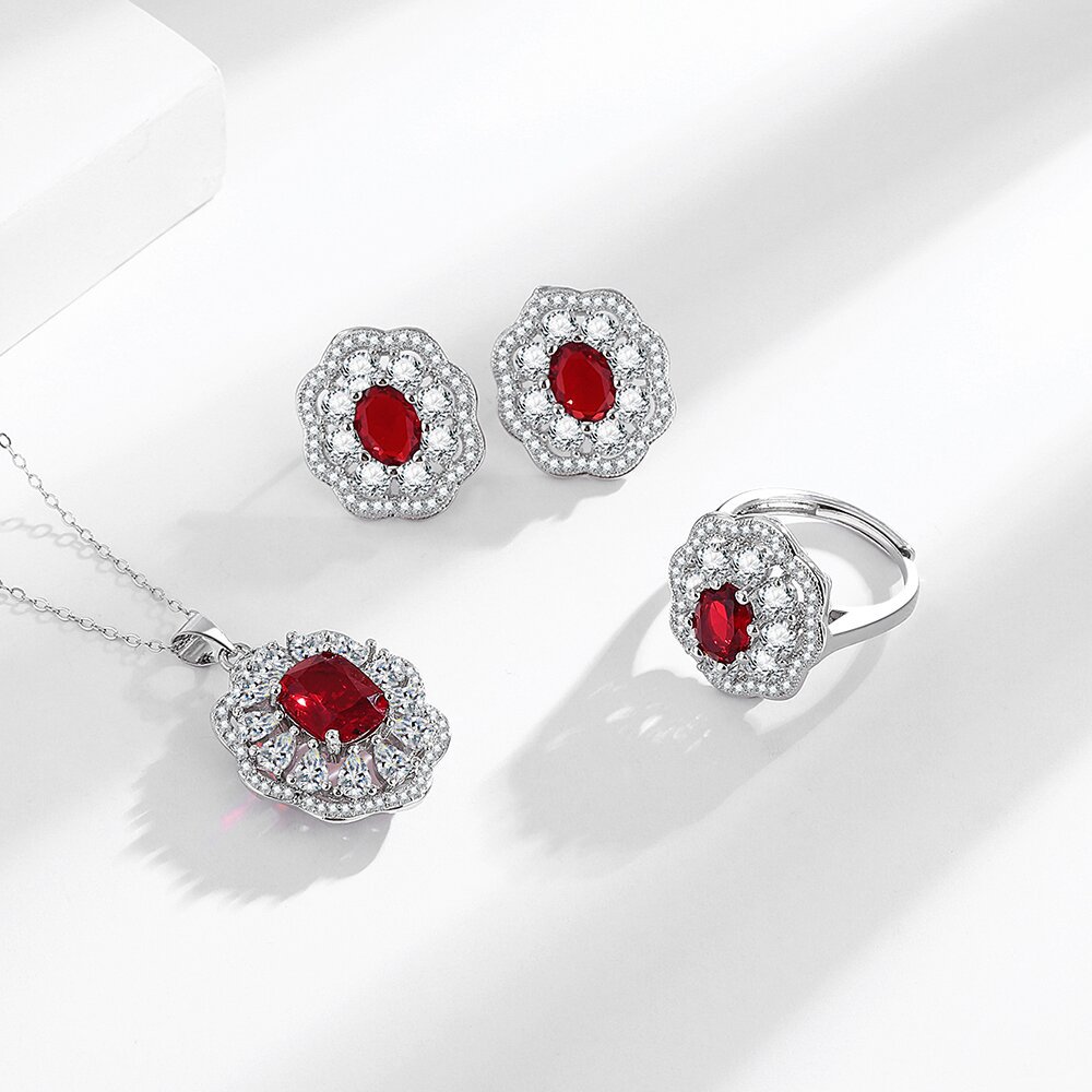 Cross-border Live Luxury Ruby suit S925 Sterling Silver Diamond Ring High-end Necklace Pendant Earrings for Women