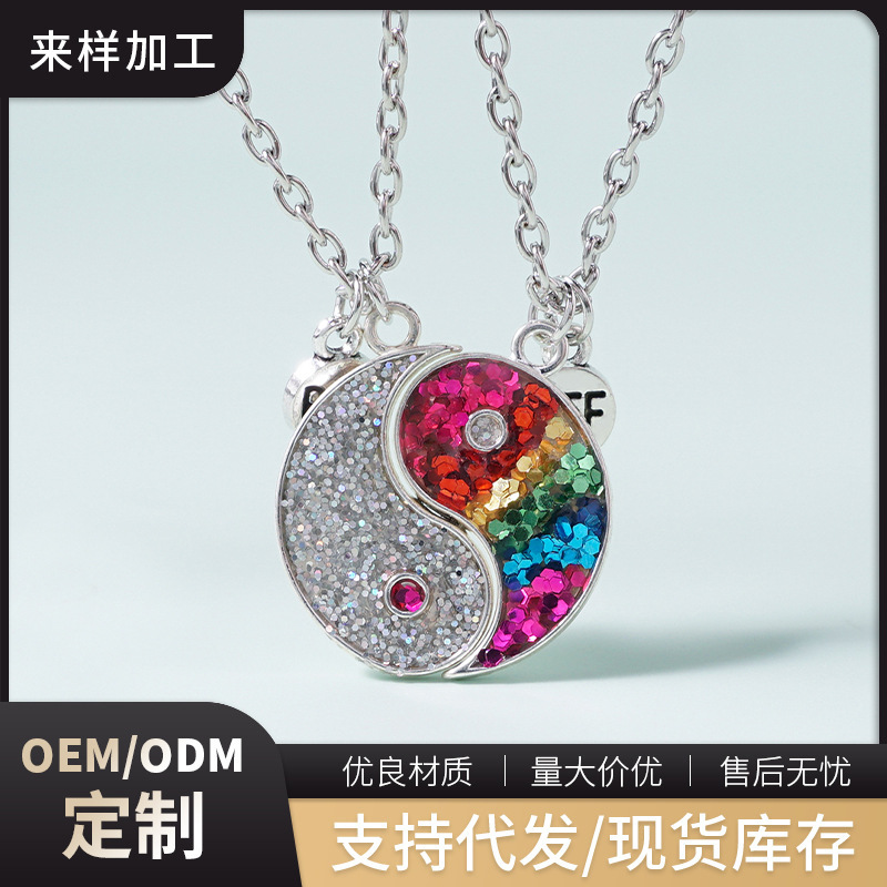 New Sequin Round Yin and Yang Tai Chi Magnetic Necklace Good Friend Bff Bestie Necklace Set Gift