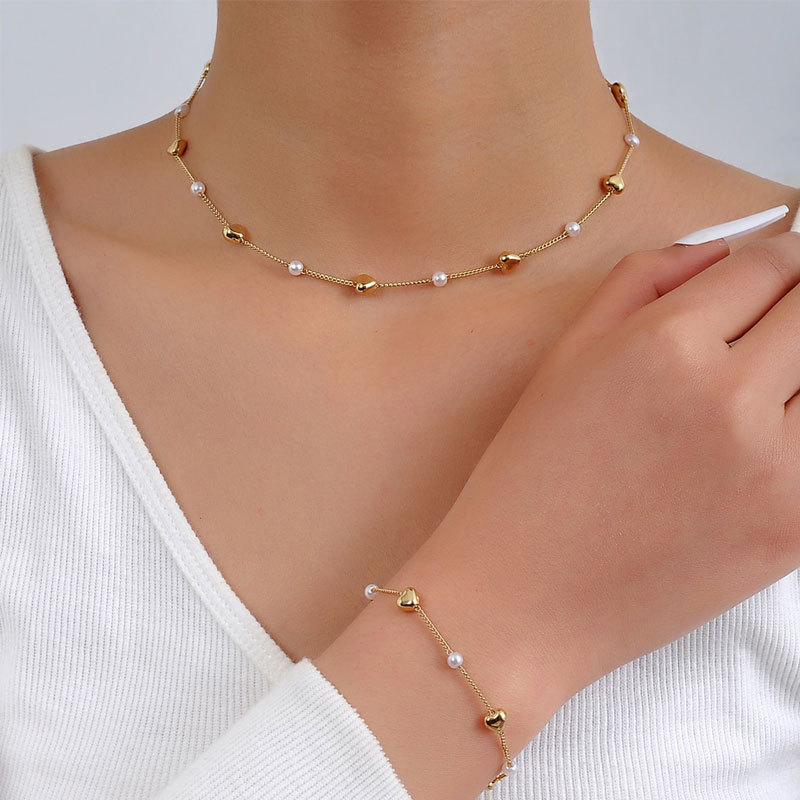 Cross-border Hot Selling CCB Love Imitation Pearl Necklace Bracelet suit Women's Simple Fashion Necklace Two-piece Set