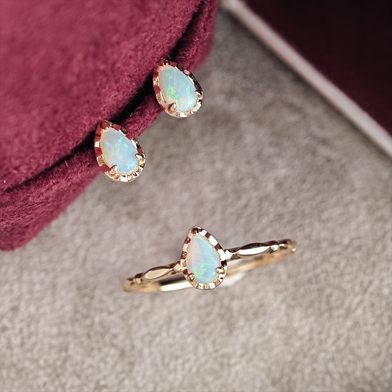 Dunli Japanese Style Light Luxury S925 Sterling Silver Gold Plated Jewelry suit Natural Water Drops Australian Aobao Elegant Ring Earrings
