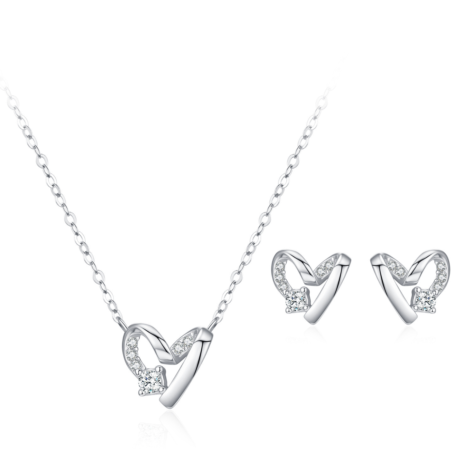 S925 Sterling Silver Sweet Heart Micro-Paved Zircon Pendant Necklace Earrings Women's Accessible Luxury Versatile Niche Jewelry Set Women